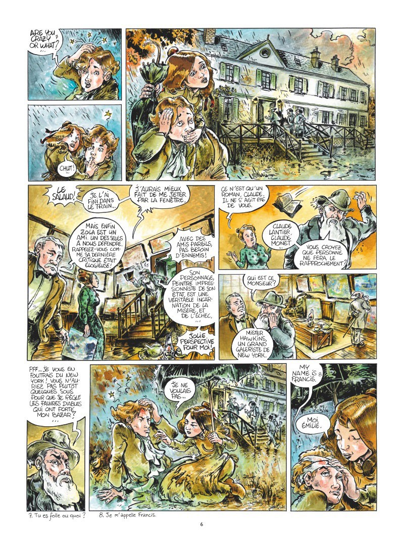 En fait le récit nous fait suivre la vie et les amours (en particulier avec un Américain) d’une jeune voisine du domaine de Giverny, une fille de maraîchers âgée d’environ huit ans en 1886 qui visite l’Exposition universelle de 1900 et est devenue infirmière le temps de la Grande Guerre. Des amours reliés à quatre saisons derrière un scénario à légère dimension onirique. Le graphisme est très sophistiqué tant par les couleurs que par le trait et le décor fouillé.